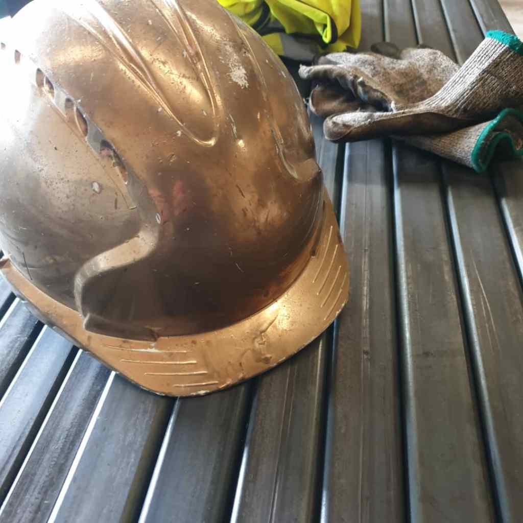 The tale of a horse..Steel to pick up in Glasgae.. HSE So I need a hard hat to get into the stockists and the only one in the worrkshop I spray painted gold. Aye they will see me coming in this Look there’s a #@%k in a gold hard hat standing on the stockroom floor.